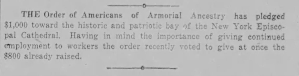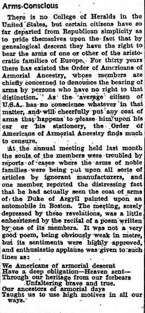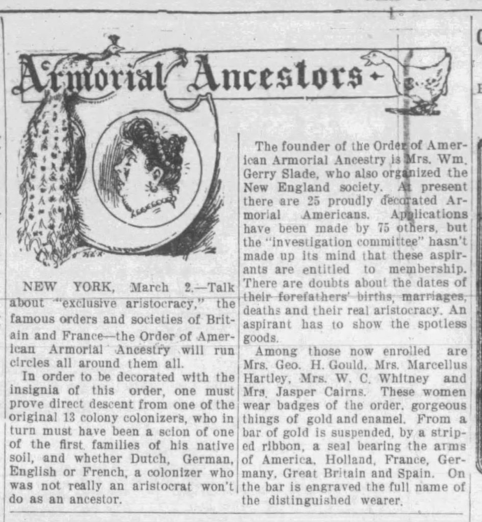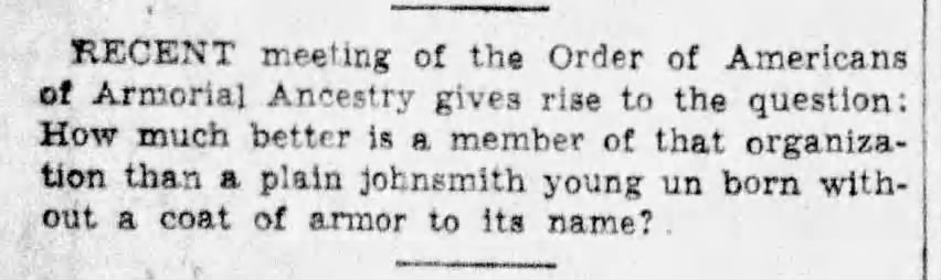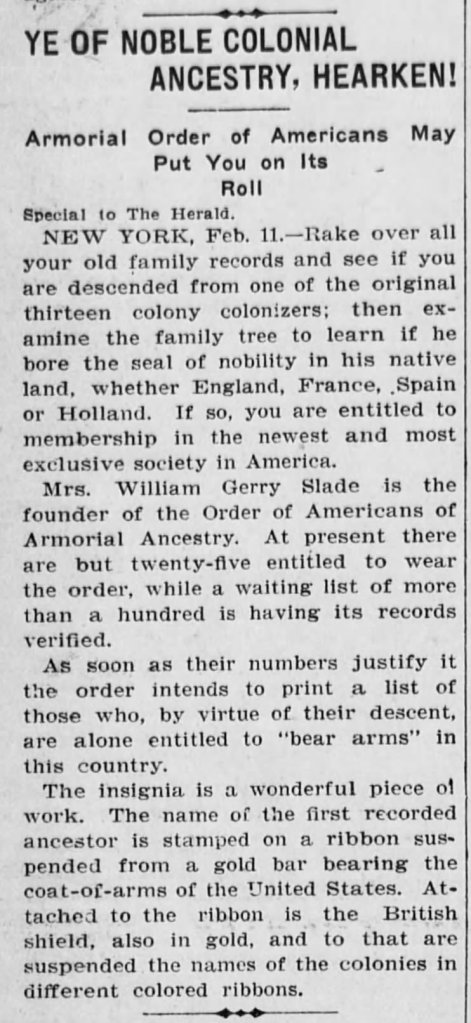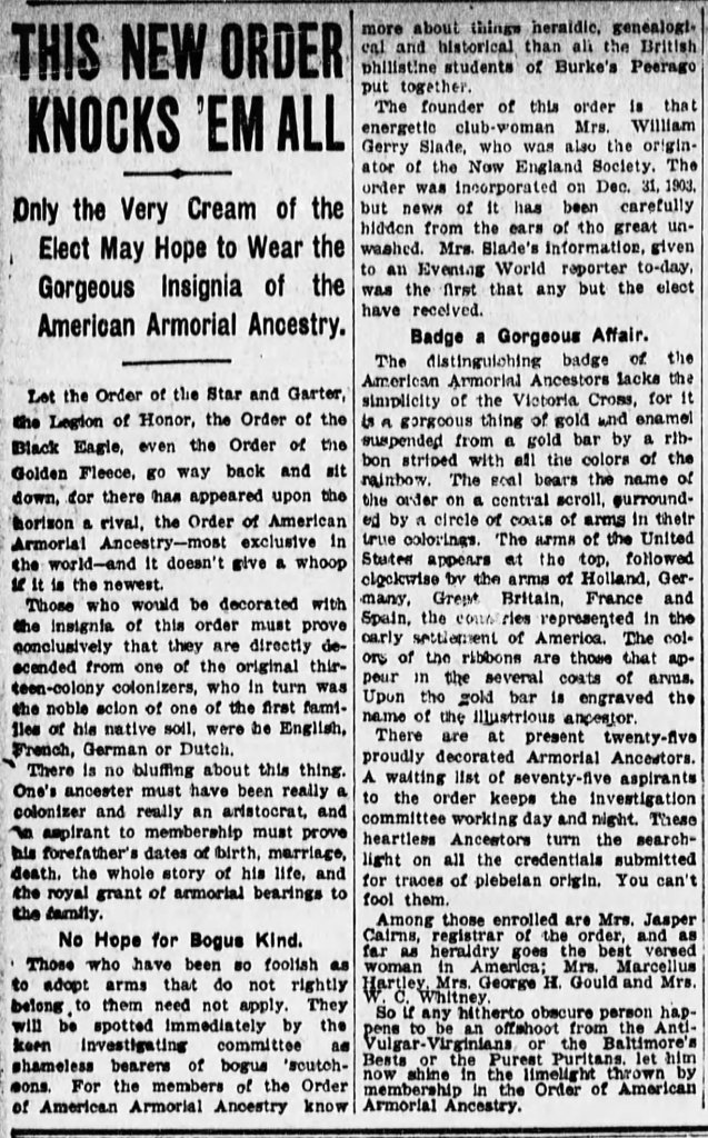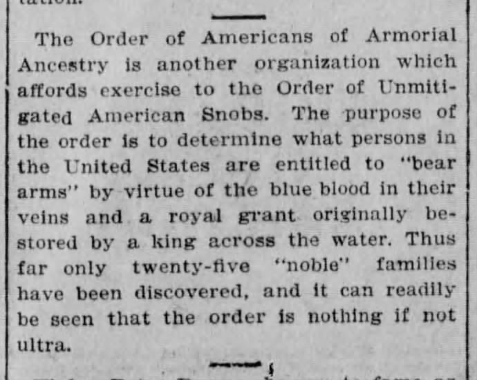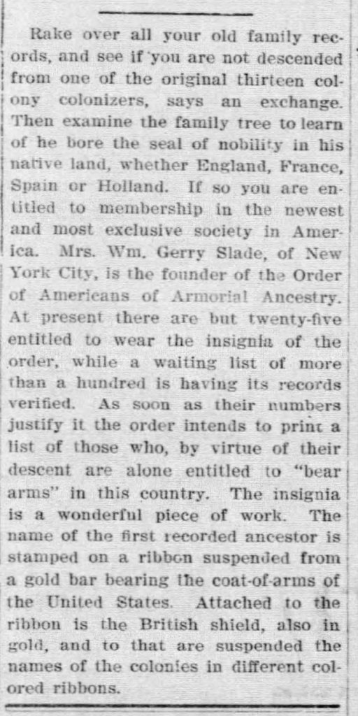 The Order of Americans of Armorial Ancestry was created in 1903.