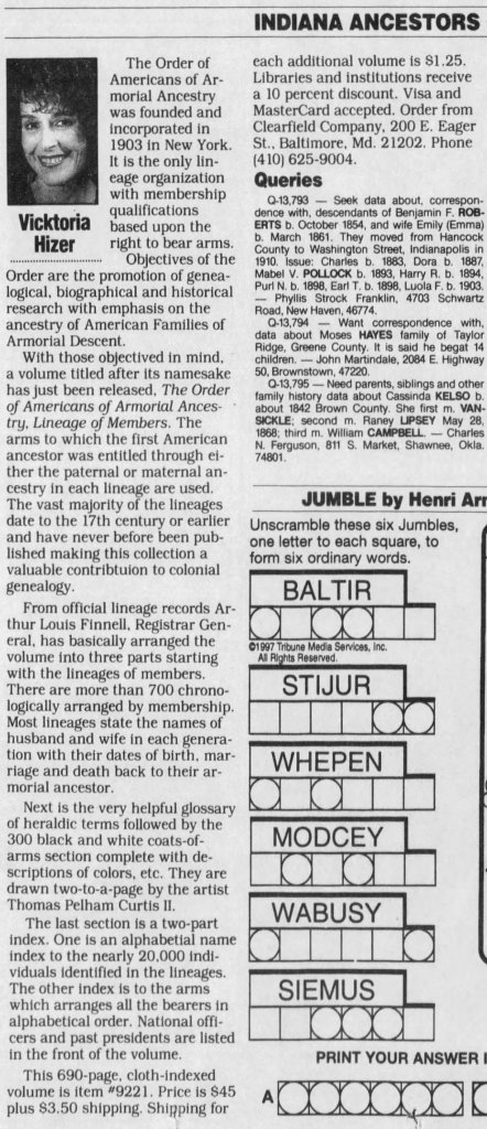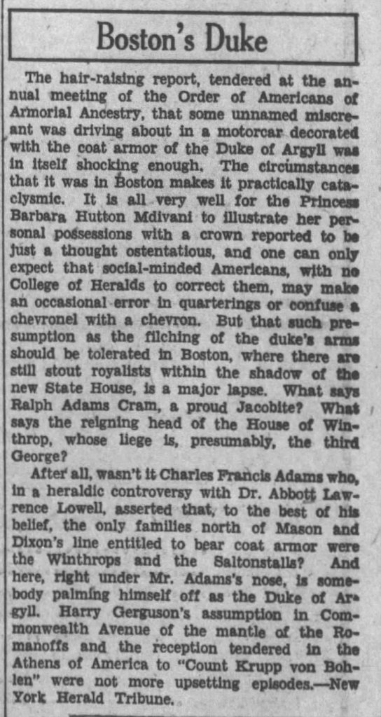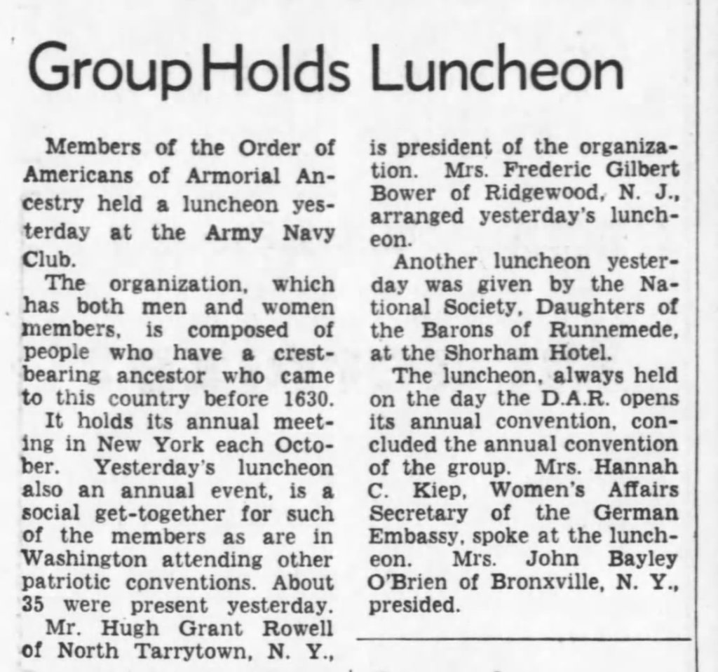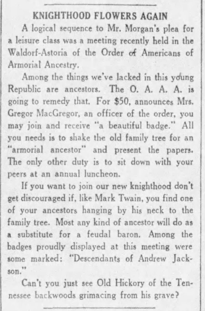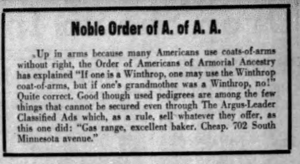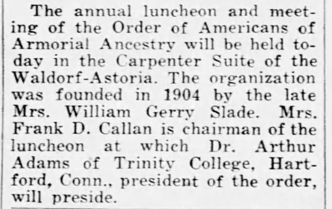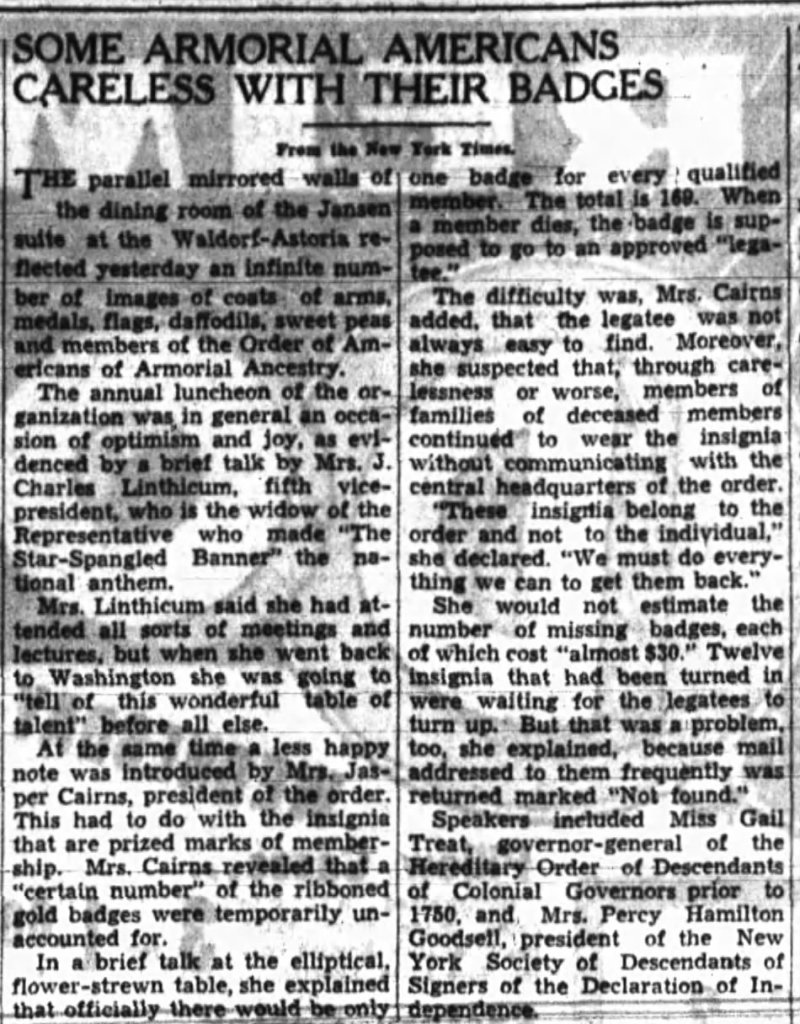 The Order of Americans of Armorial Ancestry was created in 1903.